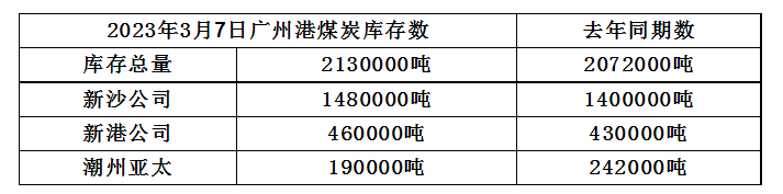 2023年3月7日广州港港口库存