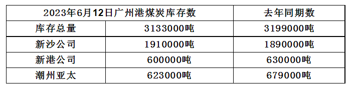 2023年6月12日广州港港口库存