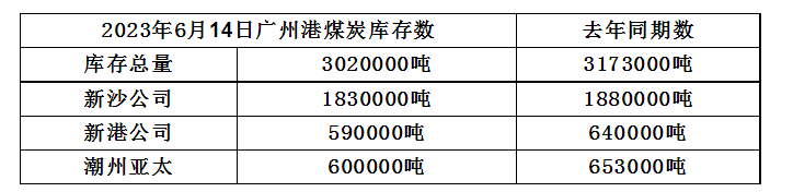 2023年6月14日广州港港口库存