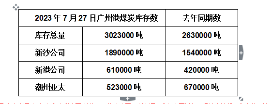 2023年7月27日广州港港口库存