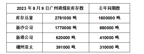 2023年8月9日广州港港口库存