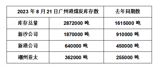 2023年8月21日广州港港口库存