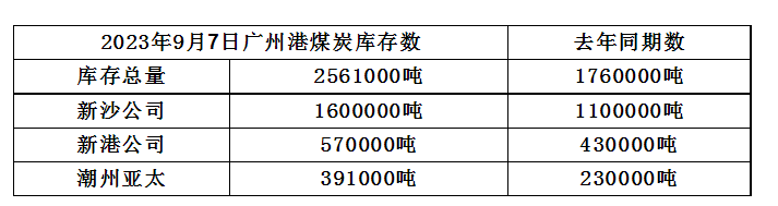 2023年9月6日广州港港口库存