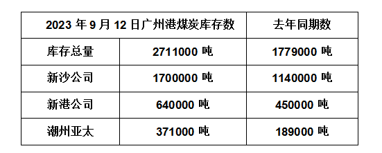 2023年9月12日广州港港口库存