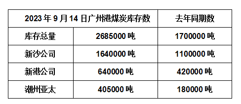 2023年9月14日广州港港口库存