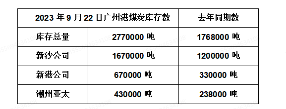 2023年9月22日广州港港口库存