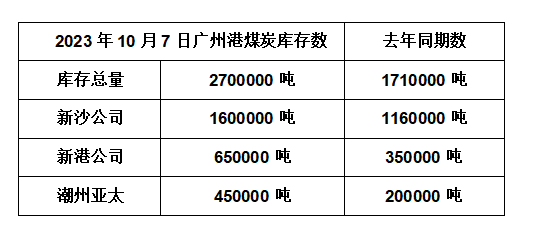 2023年10月7日广州港港口库存