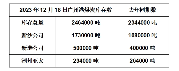2023年12月18日广州港港口库存