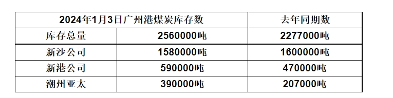 2024年1月3日广州港港口库存