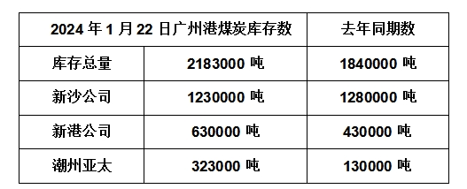 2024年1月22日广州港港口库存