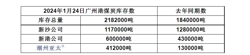 2024年1月24日广州港港口库存
