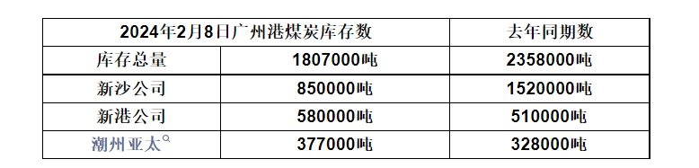 2024年2月8日广州港港口库存
