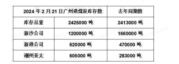 2024年2月21日广州港港口库存
