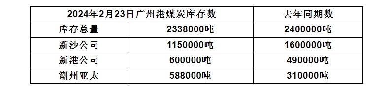 2024年2月23日广州港港口库存