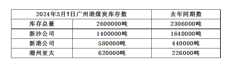 2024年3月1日广州港港口库存