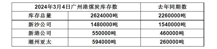 2024年3月4日广州港港口库存