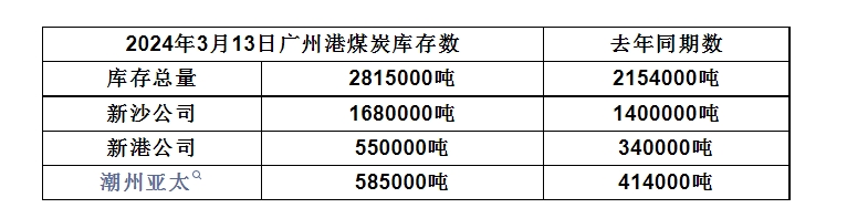 2024年3月13日广州港港口库存