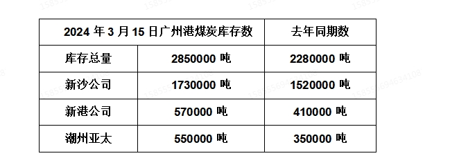 2024年3月15日广州港港口库存