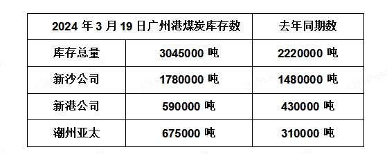 2024年3月19日广州港港口库存