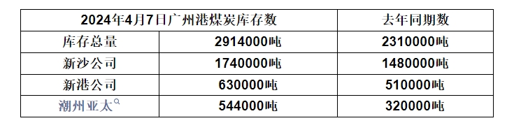 2024年4月7日广州港港口库存