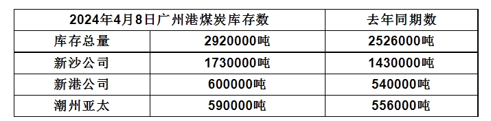 2024年4月8日广州港港口库存