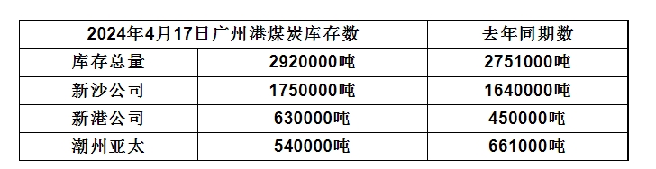 2024年4月17日广州港港口库存