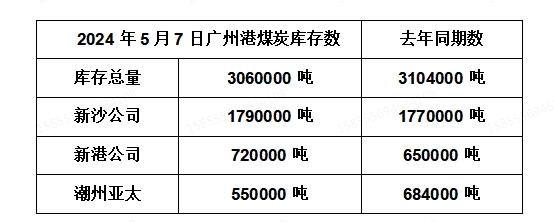 2024年5月7日广州港港口库存