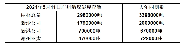 2024年5月11日广州港港口库存