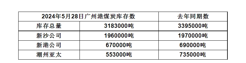 2024年5月28日广州港港口库存