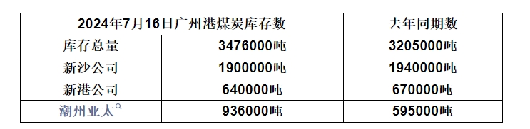 2024年7月16日广州港港口库存