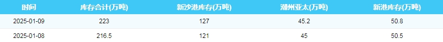 2025年1月8-9日广州港港口库存