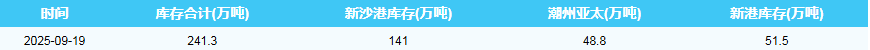 2025年9月19日广州港港口库存