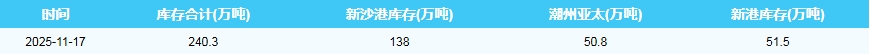 2025年11月17日广州港港口库存