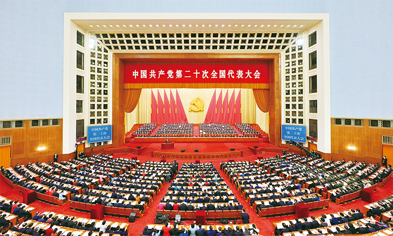 党的二十大提出开辟马克思主义中国化时代化新境界的重大任务,强调这是当代中国共产党人的庄严历史责任。图为2022年10月16日,中国共产党第二十次全国代表大会在北京人民大会堂开幕。