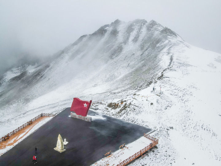这是位于四川夹金山海拔4114米垭口的红色主题文化景观(2021年5月12日摄,无人机照片)。