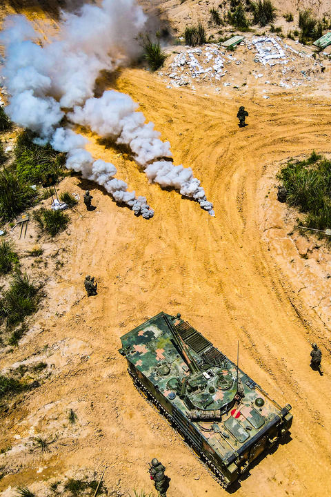 陆军第73集团军某旅“强军精武红四连”组织官兵开展连贯战术训练(2023年5月30日摄)。