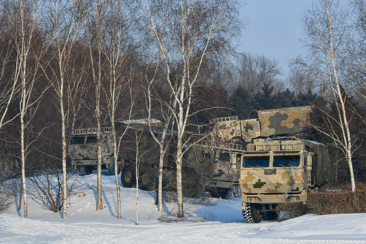 联勤保障部队某汽车运输旅运输分队开展战地驾驶课目训练(2024年1月2日摄)。