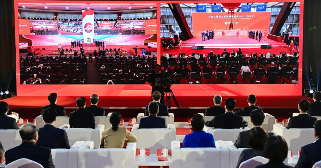 2023年4月10日,在沪深交易所主板注册制首批企业上市仪式北京分会场,与会嘉宾通过屏幕实时观看沪深两地交易所上市仪式。