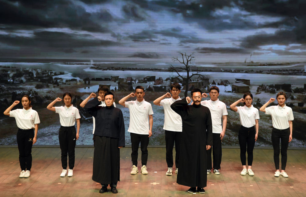 电视剧《觉醒年代》主创团队走进北京大学,剧中主要演员与北大学生同台演出(2021年4月20日摄)。