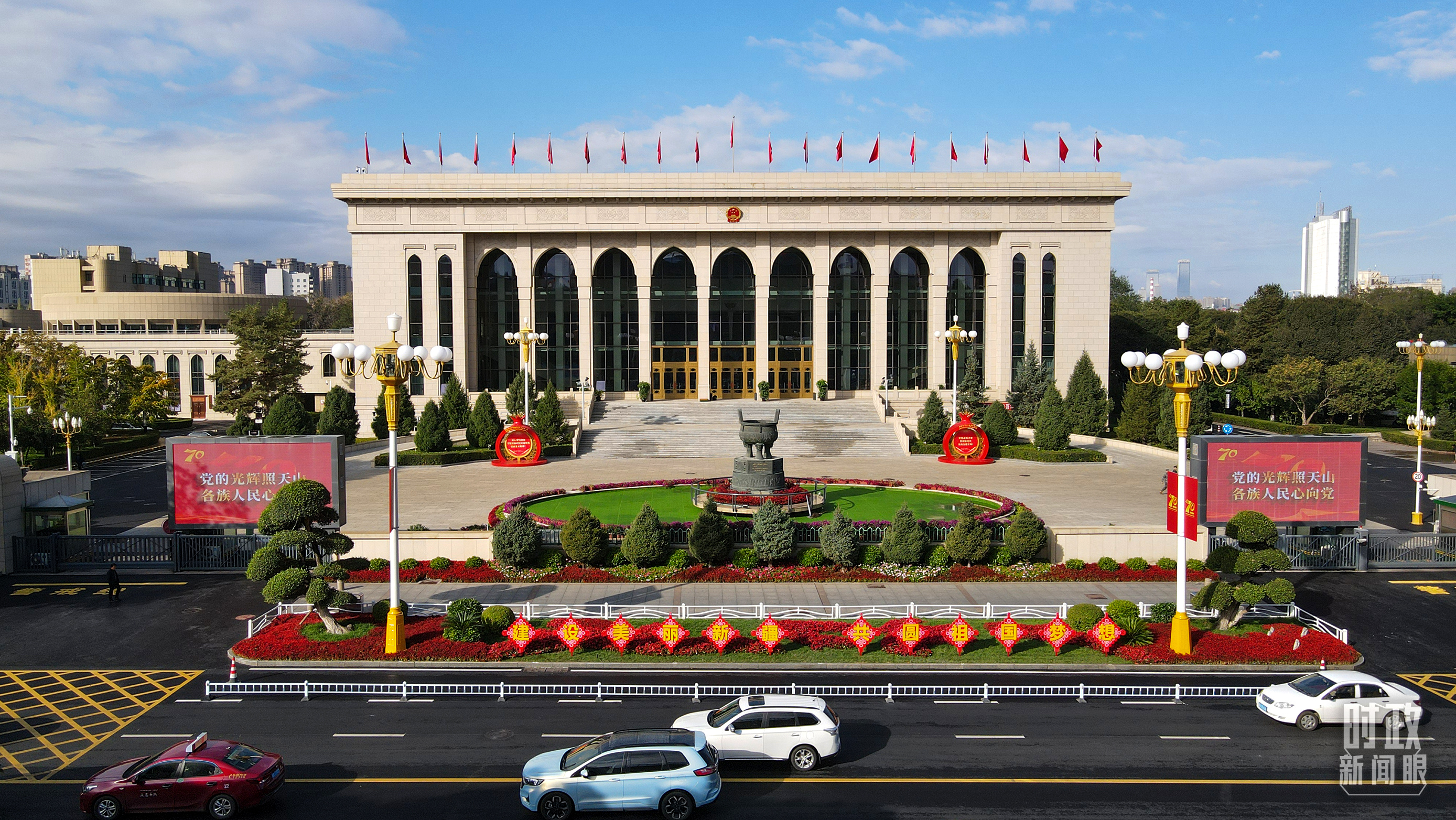 金秋时节,晴空万里。新疆各族群众热情迎接习近平总书记和中央代表团的到来。
