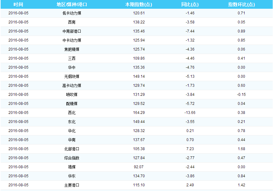 2016年8月8日中国煤炭价格指数