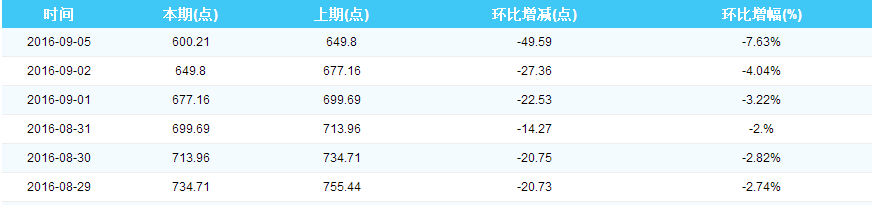 2016年9月5日中国沿海煤炭运价综合指数