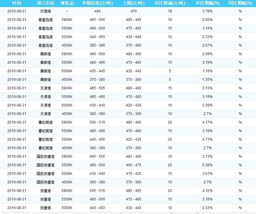 2016年8月31日环渤海动力煤价格指数