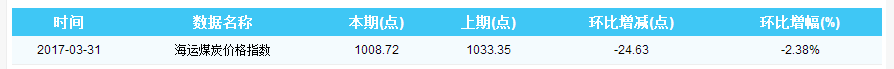 2017年3月31日海运煤炭价格指数