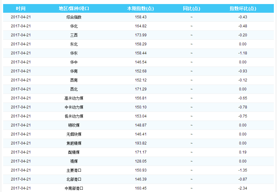 2017年4月21日中国煤炭价格指数