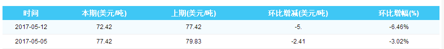 2017年5月12日纽卡斯尔动力煤价格