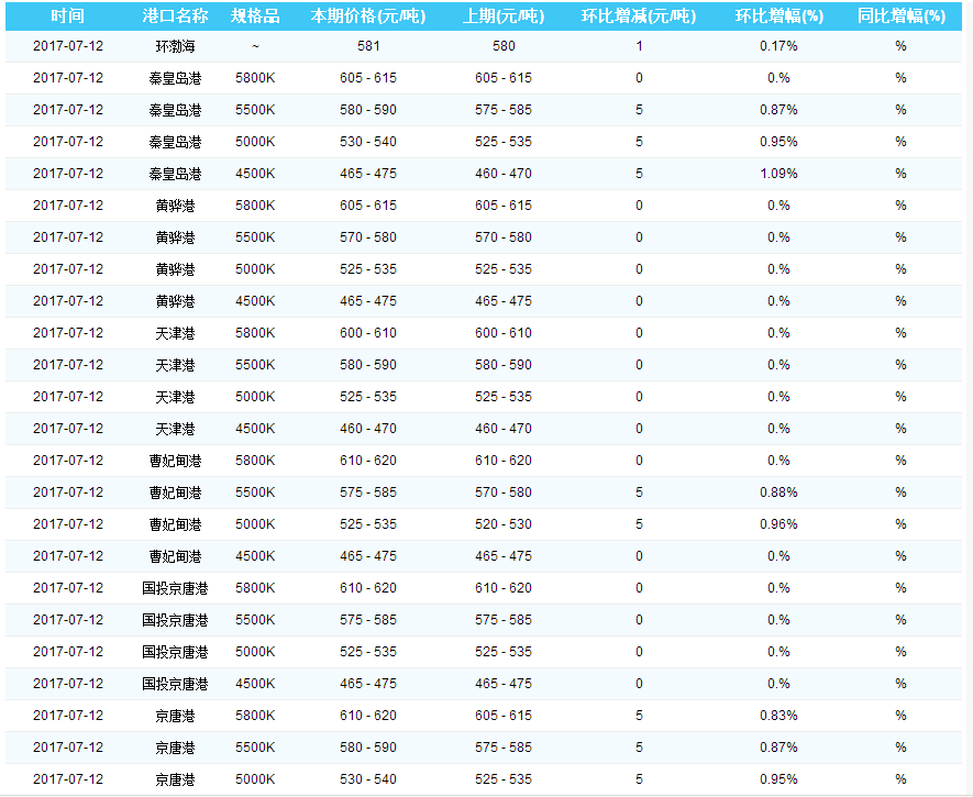 2017年7月12日环渤海动力煤价格指数
