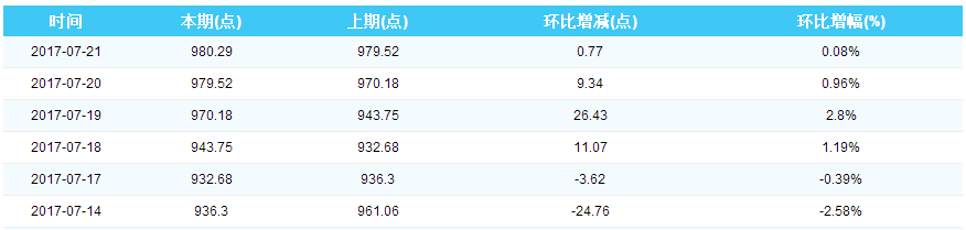 2017年7月20日中国沿海煤炭运价综合指数