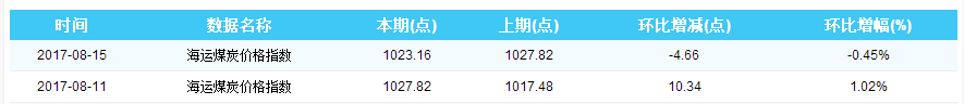2017年8月15日海运煤炭价格指数