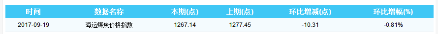 2017年9月19日海运煤炭价格指数